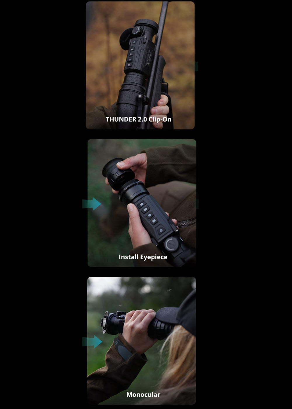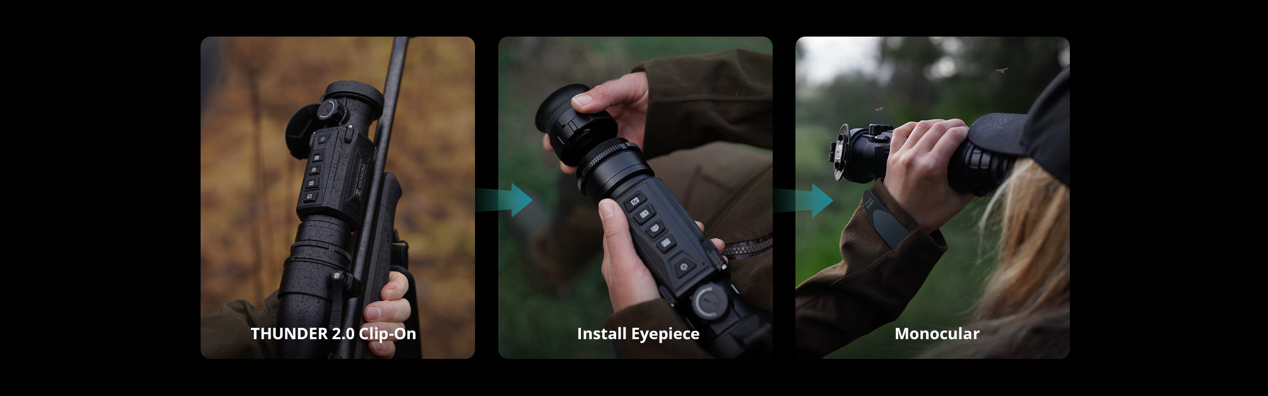 Das austauschbare Okular des THUNDER 2.0 bietet eine einfache und schnelle Möglichkeit, das Vorsatzgerät in ein Wärmebild-Monokular ab 1,8x zu verwandeln