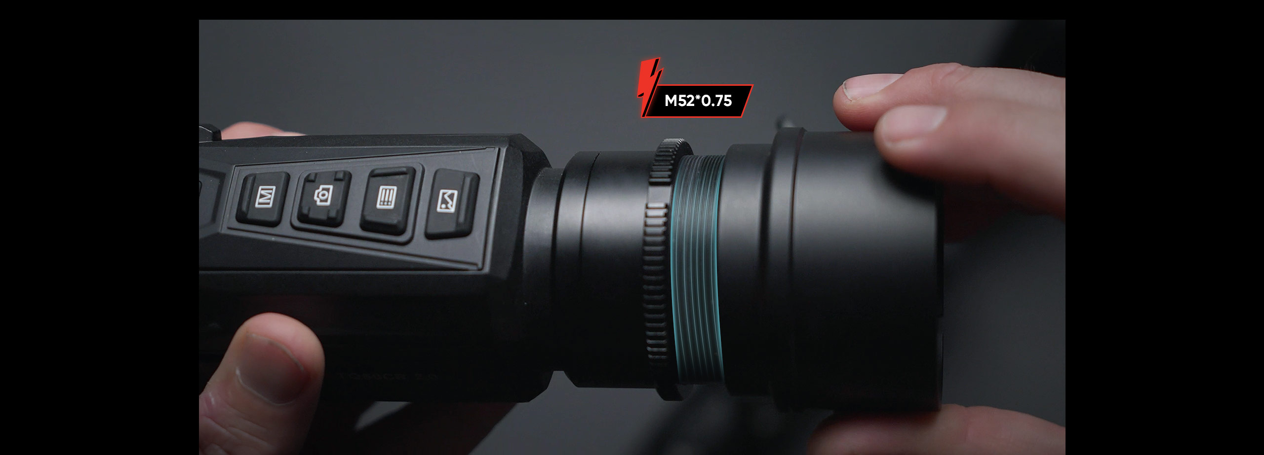 Einfach abnehmen, drehen und wieder anbringen - in nur wenigen Schritten montiert und demontiert. Das universelle M52*0,75-Gewinde bietet die Möglichkeit, Adapter anderer Hersteller zu verwenden.